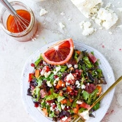 Winter Chopped Salad with Roasted Sweet Potato and Blood Orange Vinaigrette.