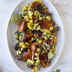 Sticky Sheet Pan Chicken with Pineapple Salsa.