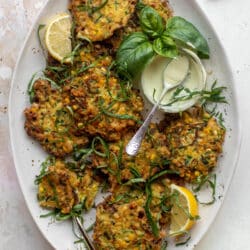 Zucchini Corn Fritters with Lemon Basil Aioli.