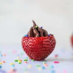 Coconut Chocolate Mousse Filled Strawberries.