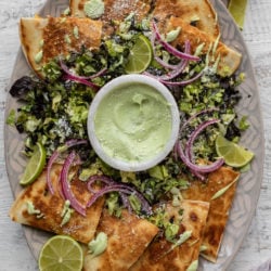 Smoky Shiitake Quesadillas with Avocado Cream.