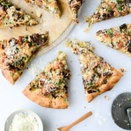 Crispy Shredded Sprouts, Cider Short Rib and Caramelized Shallot Pizza.
