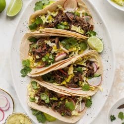Sweet and Spicy Short Rib Tacos with Sesame Guacamole.